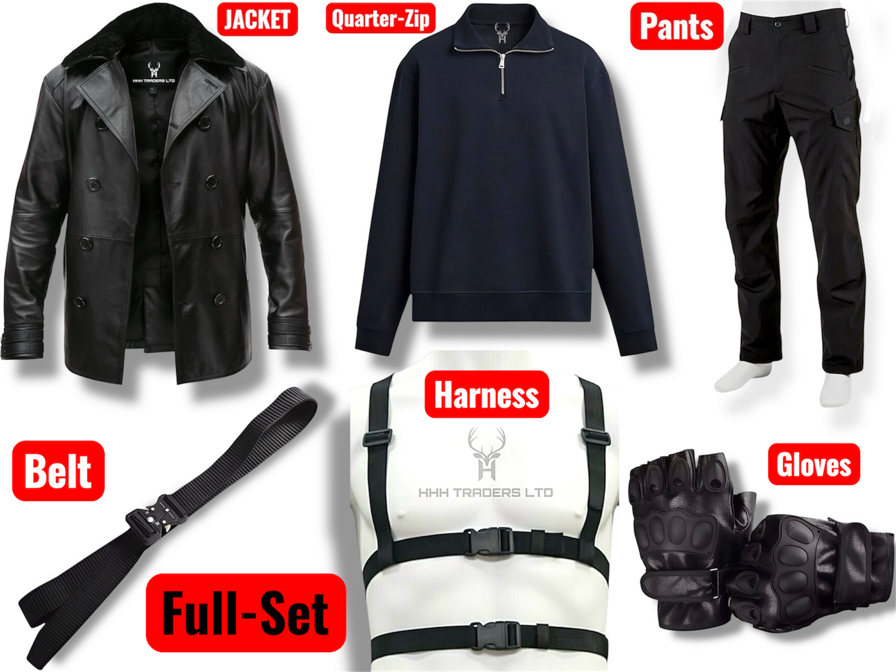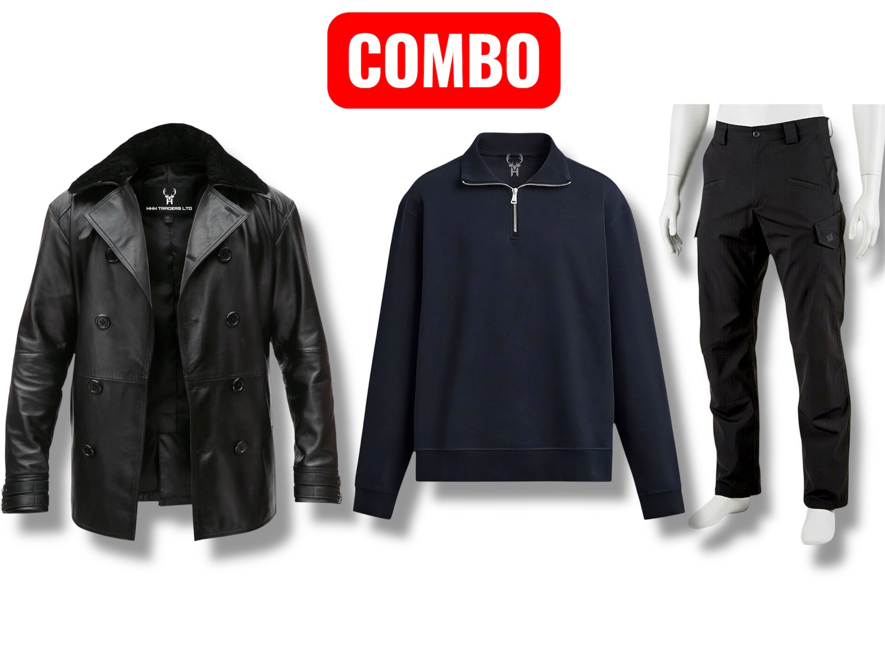 • Combat Pants: Rugged, multi-pocket tactical trousers with a tapered fit.